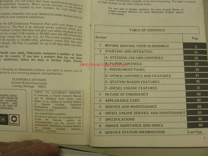Oldsmobile Cutlass, Cutlass Cruiser 1980 -käyttöohjekirja englanniksi