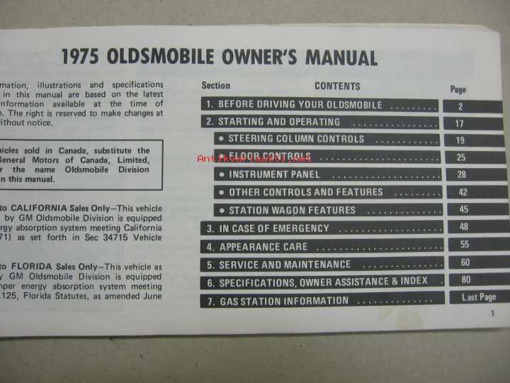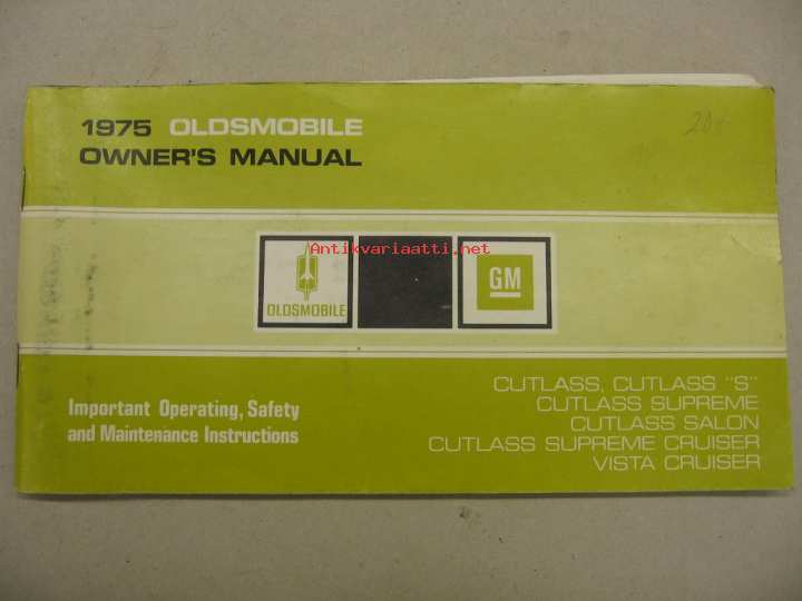 Oldsmobile Cutlass, S, Supreme, Salon, Supreme Cruiser, Vista Cruiser 1975 -käyttöohjekirja englanniksi