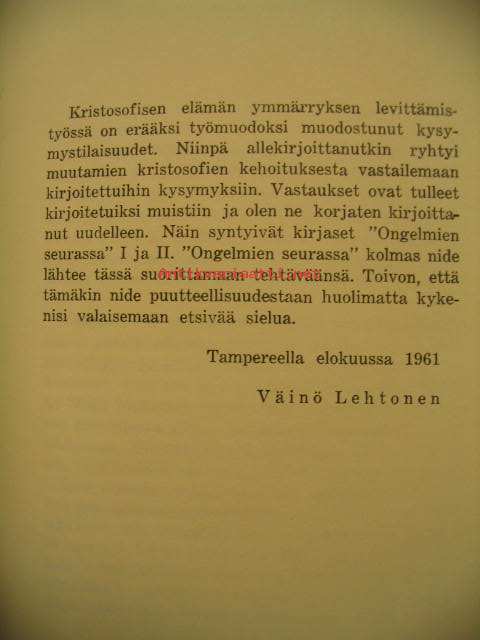 Lehtonen Väinö, P. E:n kannatusliitto, 1961