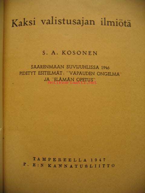 Kosonen S. A., P. E:n kannatusliitto, 1947