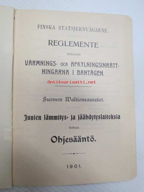 Suomen Waltionrautatiet - Junien lämmitys- ja jäähdytyslaitoksia kopskeva Ohjesääntö 1901 Finska Statsjernvägerne Reglemente rörande Värmnings- och afkylningsinrättningarna i bantågen