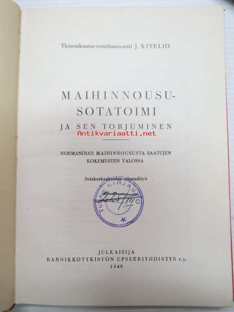 J. Kiveliö, Rannikkotykistön upseeriyhdistys ry, 194815 x 21 cm.