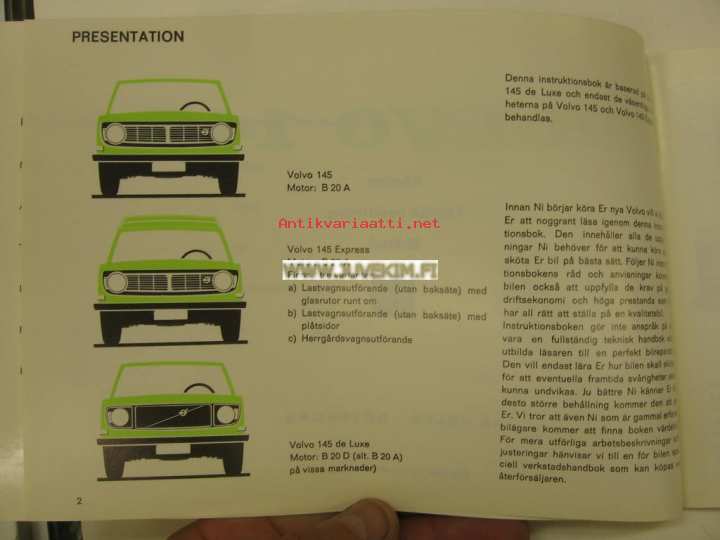 Volvo 145 1972 instruktionsbok -käyttöohjekirja