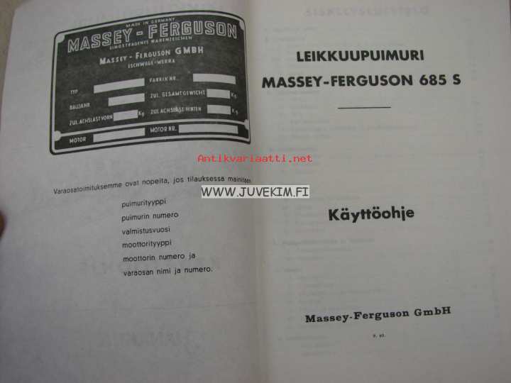 Massey-Ferguson leikkuupuimuri 685 S -käyttöohjekirja ( A5 kopio)