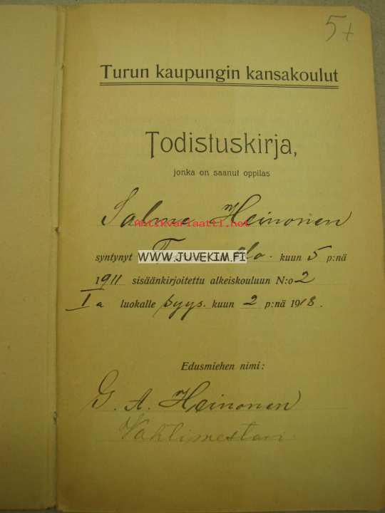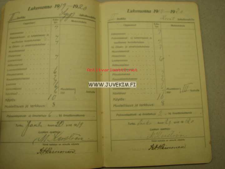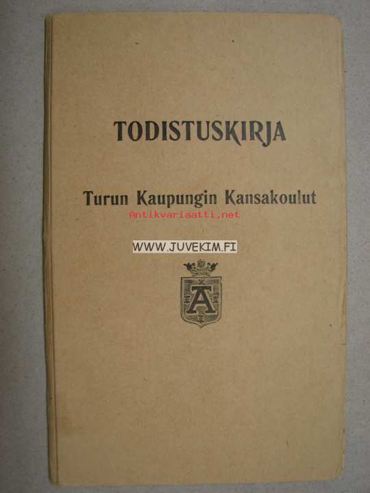 Todistuskirja Turun kaupungin kansakoulut