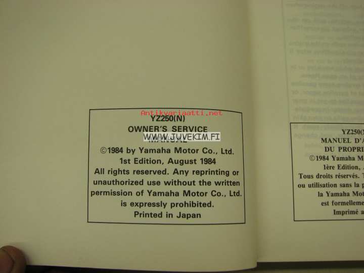 Yamaha YZ250 (N) owner´s service manual -huolto-ohjekirja