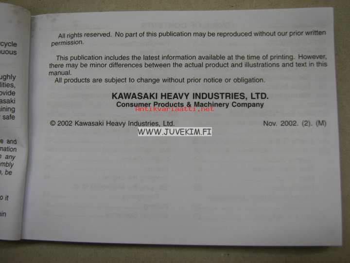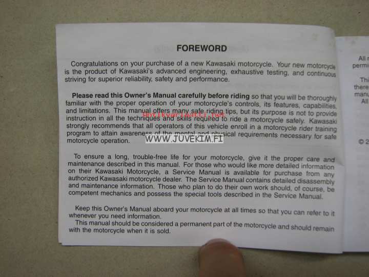 Kawasaki Z1000 owner´s manual -käyttöohjekirja