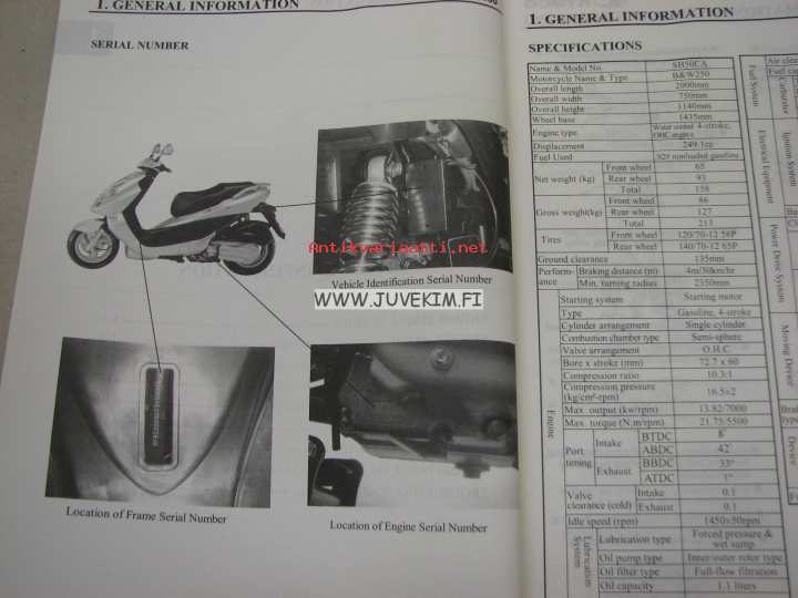 Kymco Bet & Win 250 -Service manual, korjaamokirja