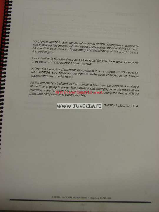 Derbi 50 c.c. engine 6 gears -shop manual, korjaamokirja