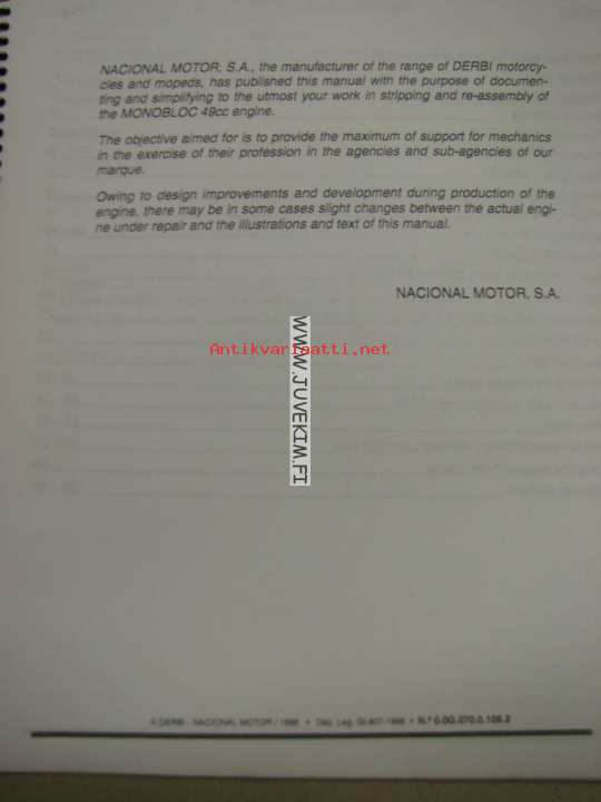 Derbi Monobloc engine -shop manual, korjaamokirja