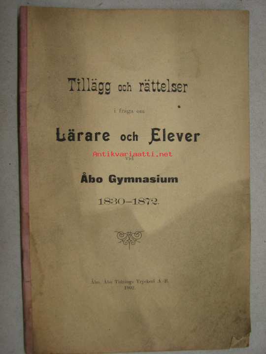 Tilläg och rättelser i fråga om lärare och elever vid Åbo Gymnasium 1830-1872