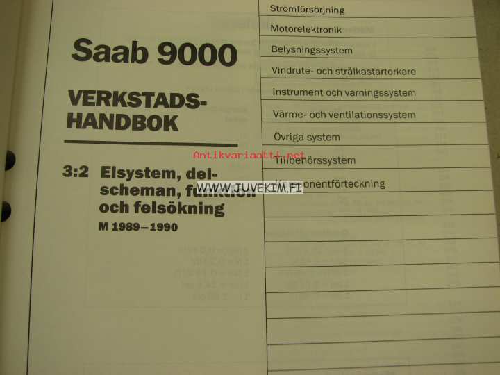 Saab 9000 3:2 Sähköjärjestelmä, kytkentäkaaviot M 1985, 1986 -korjaamokirjasarjan osa