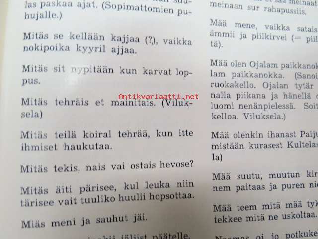 | Saatavilla | 1 kpl | | Julkaisuvuosi | 1977 | | Sivuja | 219 | | Painos | 1. | | Kunto | K2 | | Kansipaperit kuluneet | | Sidonta/painoasu | Sidottu (kansipaperit) | | ISBN | 951-717-123-4 | | Kielet | Suomi |