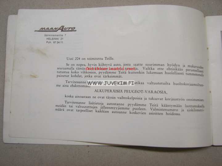 Peugeot 204 -käyttöohjekirja