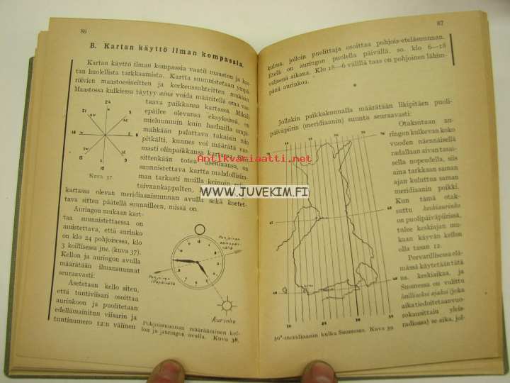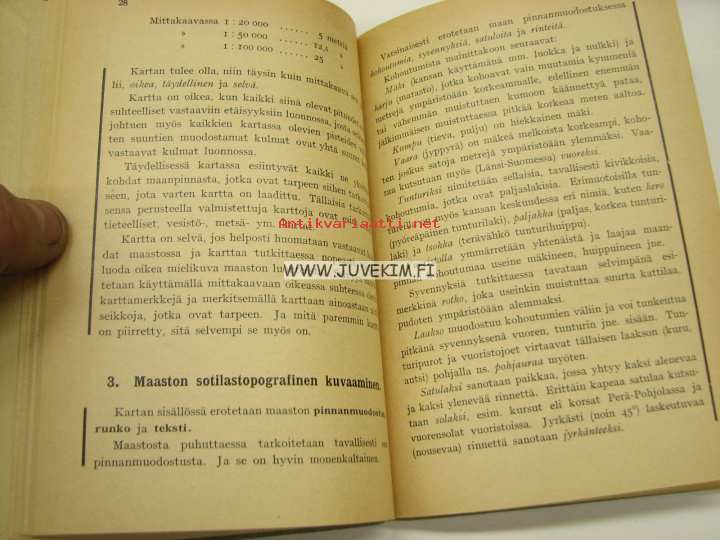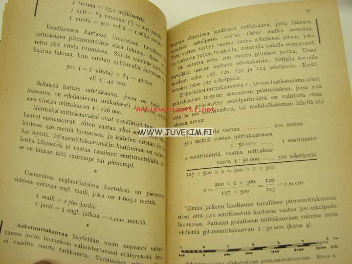 12 x 17 cm kirja. Liitteet ja mallikartan palat (8 kpl) tallella.