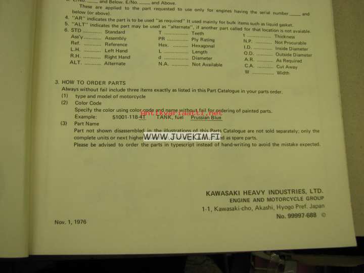Kawasaki 125-A1 Parts Catalogue for European market -varaosaluettelo