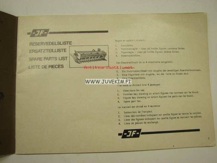 JF leikkuri MS 70-90-105 spare parts list -varaosaluettelo