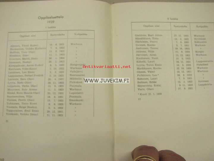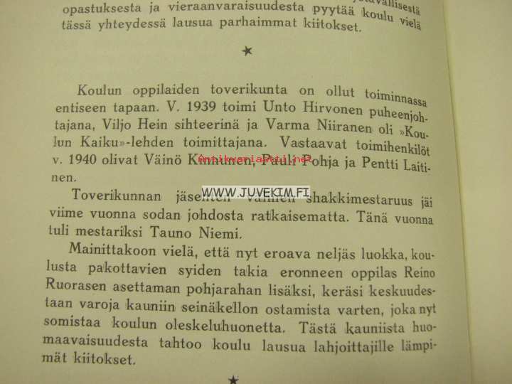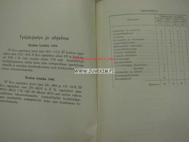 Warkauden tehtaan ammattikoulu lukuvuodet 1939 ja 1940 V ja VI