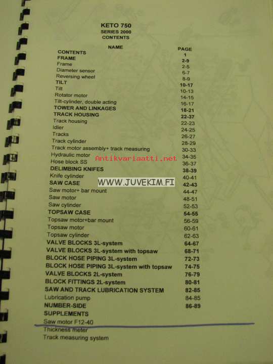 Keto-750 series 2000 harvester spare parts catalogue -varaosakirja