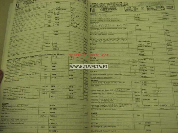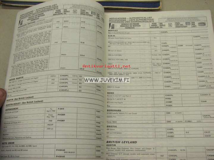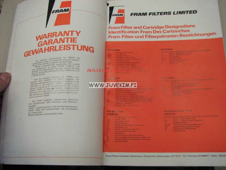 Fram filters 1971 Master Catalogue -ilmansuodatinluettelo