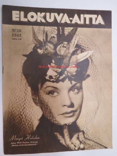 Elokuva-Aitta 1943 nr 18 sis. mm. seur. artikkelit / kuvat; Kansikuvassa Margot Hielscher - Naiset eivät ole enkeleitä, James Cagney, Simo Penttilä,