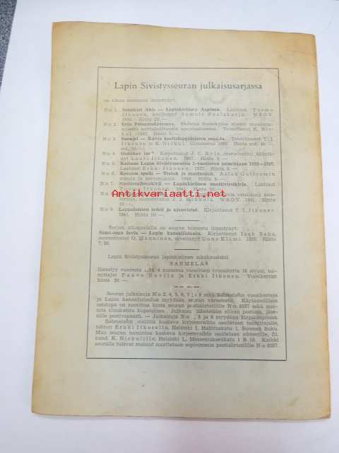 T.I. Itkonen, Lapin Sivistysseura, 194117 x 24 cm.