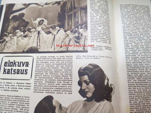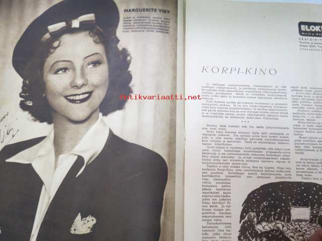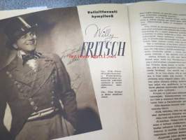 Elokuva-Aitta 1942 nr 23 sis. mm. seur. artikkelit / kuvat; Kansikuvassa Heidemarie Hatheyer, Korpikino - rintamateatteri, Bette Davis, Rantasuon raatajat, willy Fritsch, Carmen Miranda, ym.22 x 29 cm.