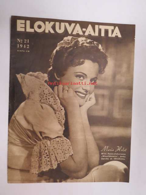 Elokuva-Aitta 1942 nr 21 sis. mm. seur. artikkelit / kuvat; Kansikuvassa Maria Holst - Wieniläisverta, Hairahtunut, Filmi ja kirjallisuutemme, Lasse Pöysti, Bette
