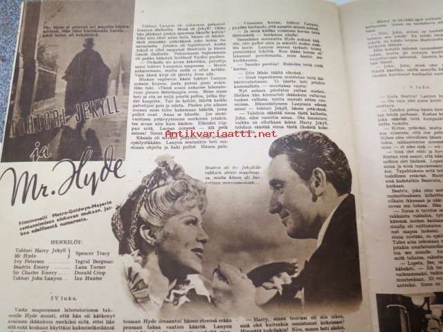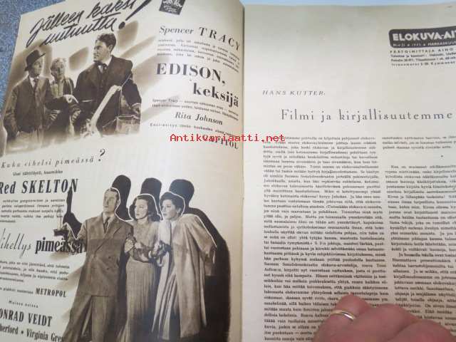 Elokuva-Aitta 1942 nr 21 sis. mm. seur. artikkelit / kuvat; Kansikuvassa Maria Holst - Wieniläisverta, Hairahtunut, Filmi ja kirjallisuutemme, Lasse Pöysti, Bette Davis - Avioeron lapsi, Hopeakihlajaiset , Greta Garbo, Hilde Hildebrand & Gusti Huber, Tohtori Jekyll & Mister Hyde, ym.22 x 29 cm.