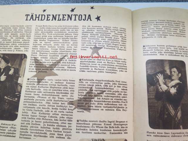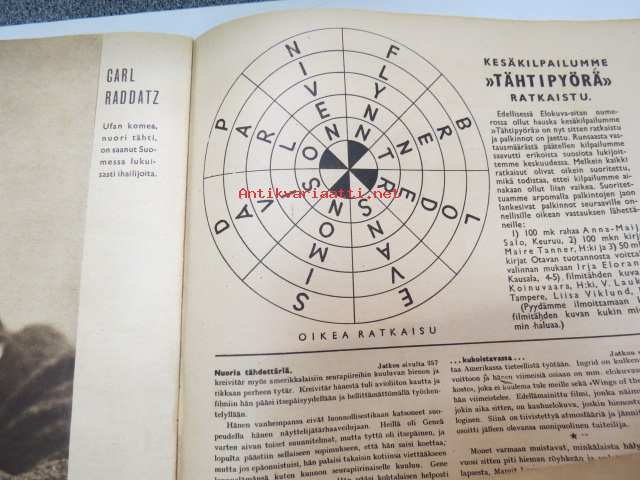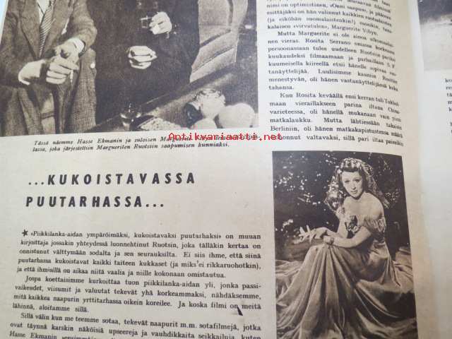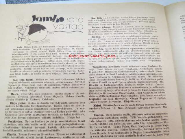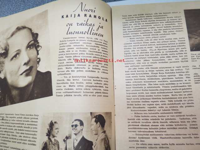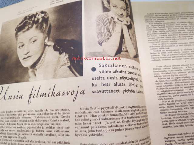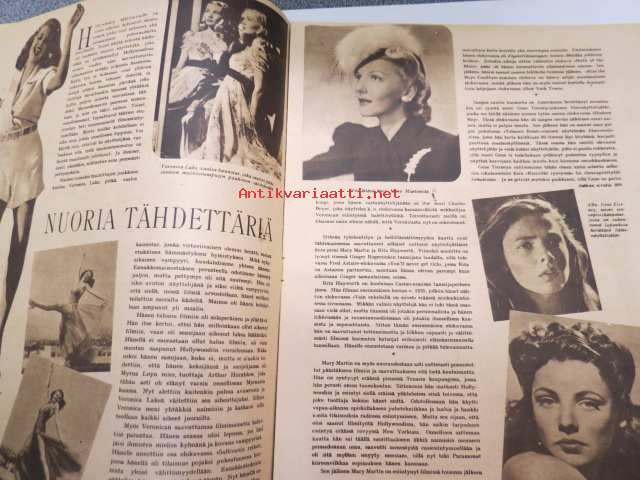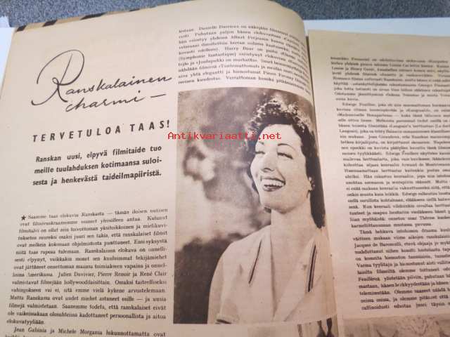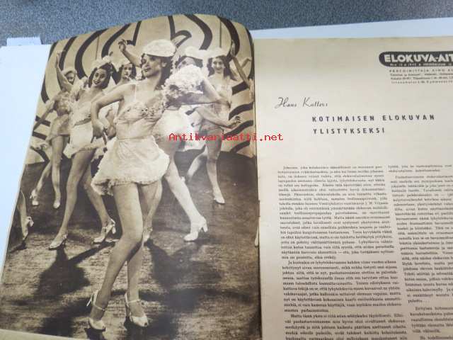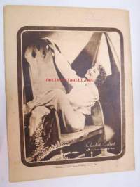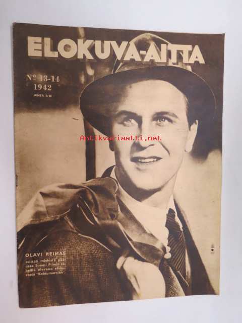Elokuva-Aitta 1942 nr 13-14 sis. mm. seur. artikkelit / kuvat; Kansikuvassa Olavi Reimas - Keinumorsian, Lilian Ellis, Gerhild Weber, René Deligen, Kaija Rahola on raikas ja luonnollinen, Suomen Filmiteollisuuden uutuuksia, Carl Raddatz, Claudette Colbert, ym.22 x 29 cm.