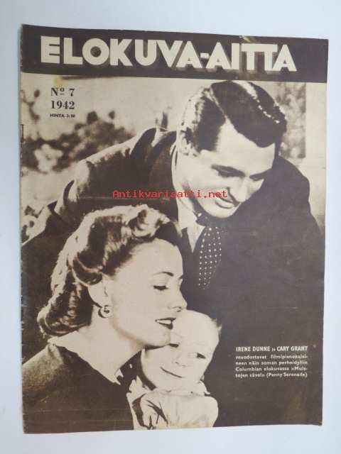 Elokuva-Aitta 1942 nr 7 sis. mm. seur. artikkelit / kuvat; Kansikuvassa Irene Dunne & Gary Grant Muistojen sävel -elokuvassa, James Cagney & Ann Sheridan - Costa