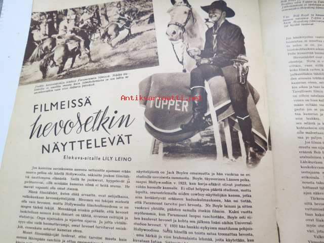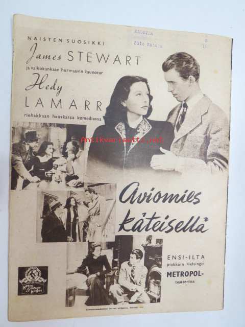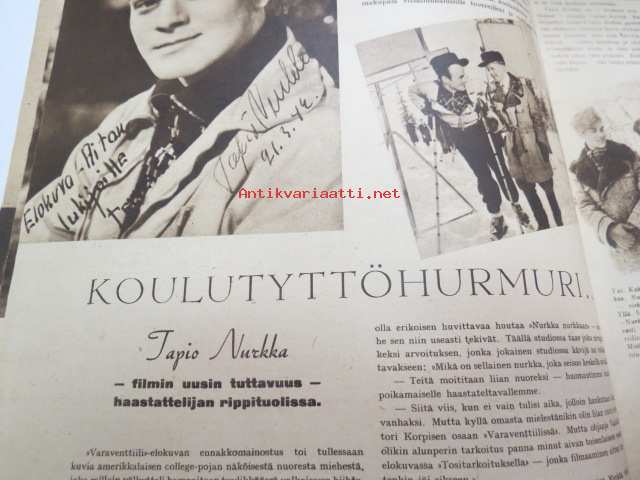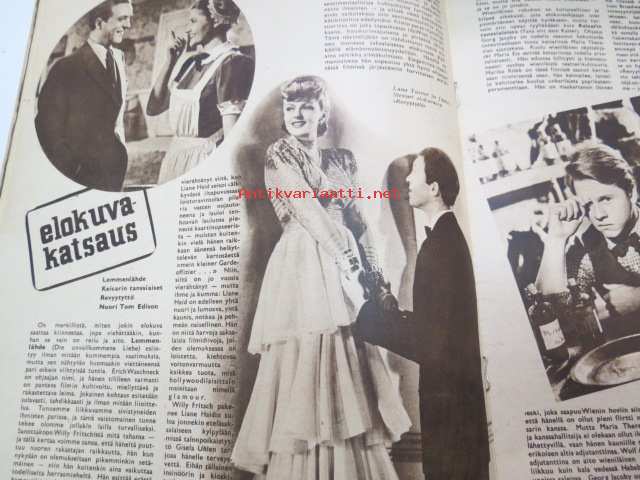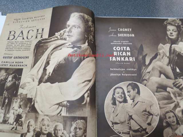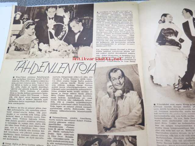 Elokuva-Aitta 1942 nr 7 sis. mm. seur. artikkelit / kuvat; Kansikuvassa Irene Dunne & Gary Grant Muistojen sävel -elokuvassa, James Cagney & Ann Sheridan - Costa Rican sankari, Mitä ymmärrämme "toimintafilmillä"!, Koulutyttöhurmuri Tapio Nurkka, Vivian Leigh, Ann Rutherford, Lily Leino - Filmeissä hevosetkin näyttelevät, James Stewart & Hedy Lamarr - Aviomies käteisellä, ym.22 x 29 cm.