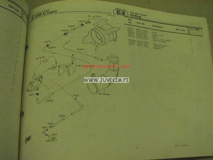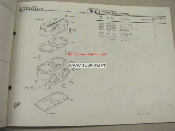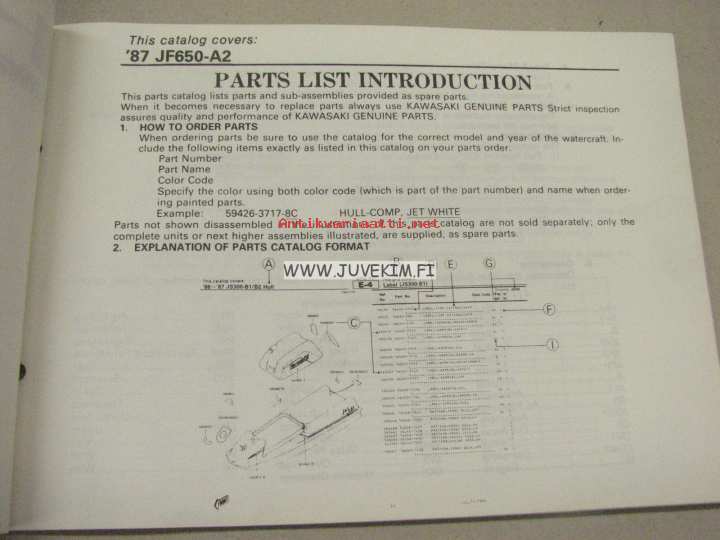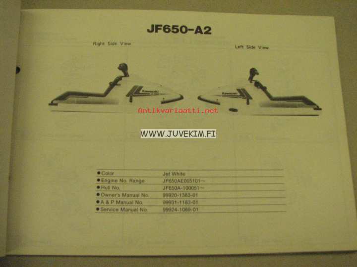 Kawasaki JF650-A (Jet ski X-2) parts catalog -varaosaluettelo