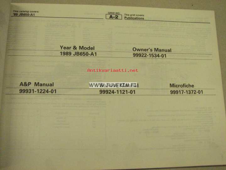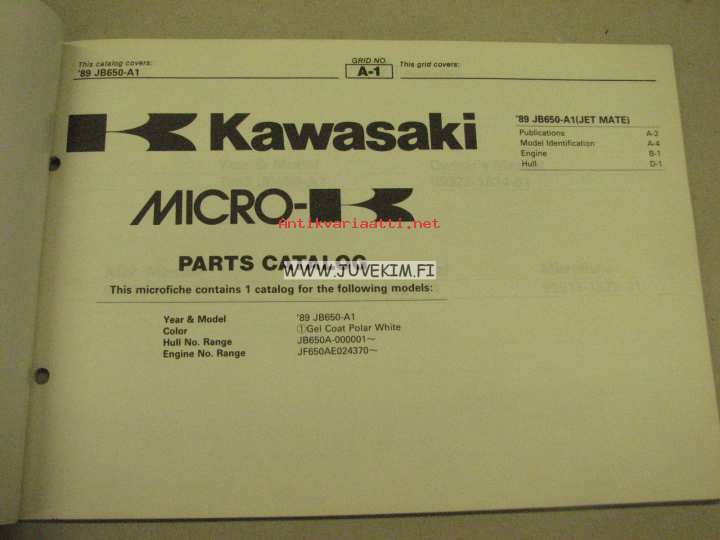 Kawasaki JB650-A1(Jet Mate) parts catalog -varaosaluettelo