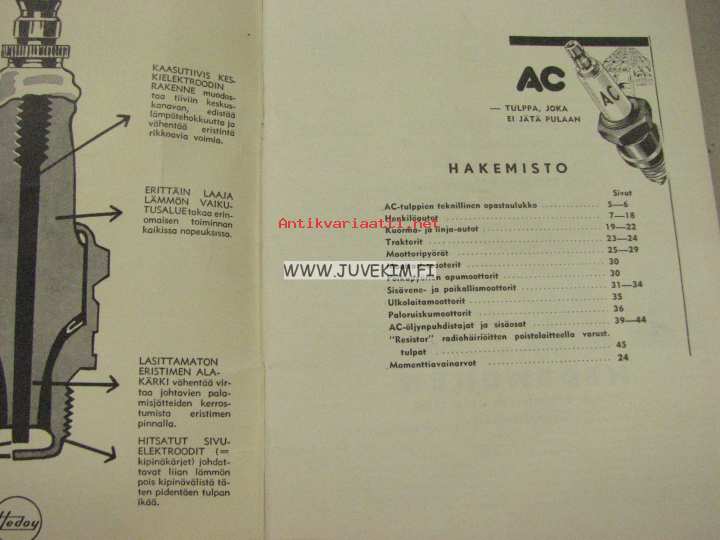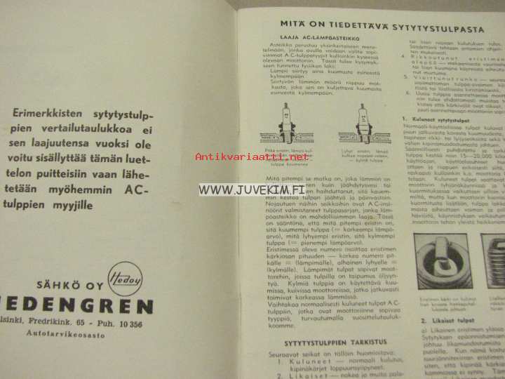 AC sytystulpat käyttö- ja huolto-opas 1954