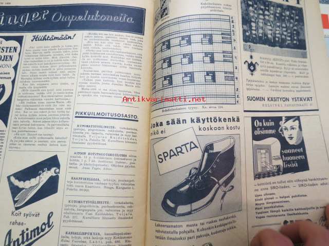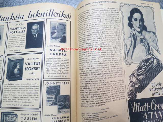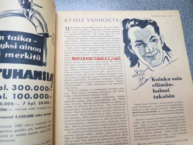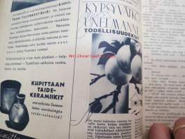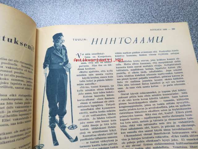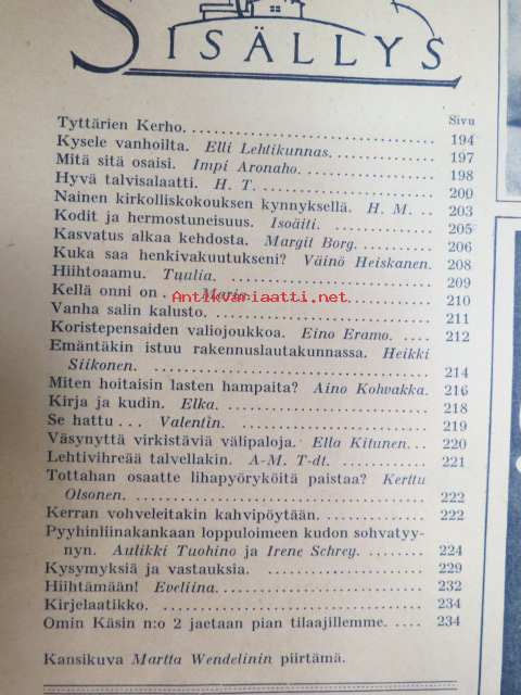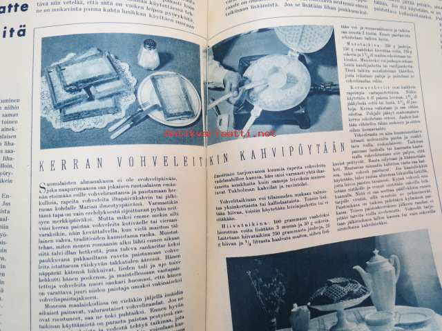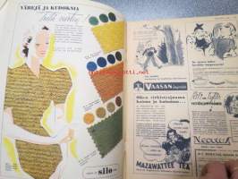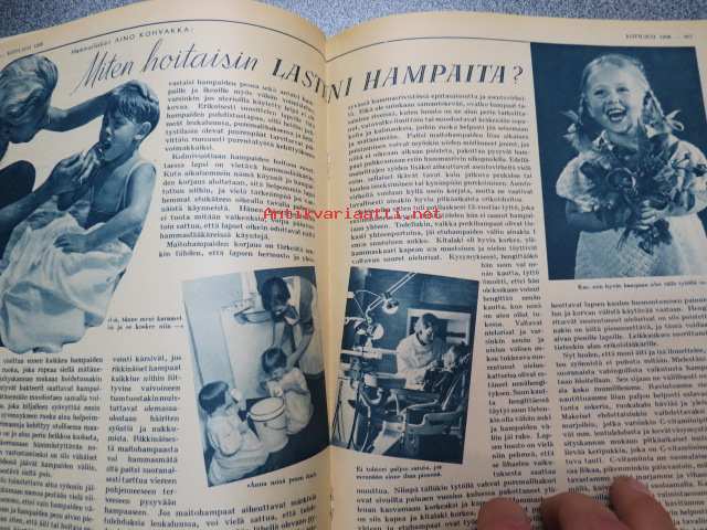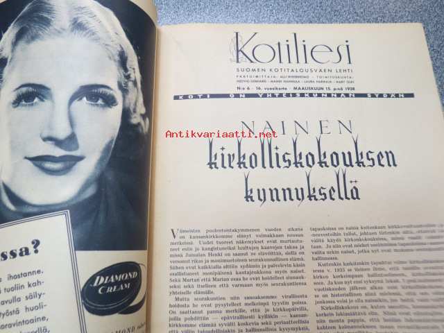 Kotiliesi 1938 nr 6, maaliskuu II, sis. mm. seur. artikkelit / kuvat / mainokset; Kansikuvitus Martta Wendelin, Kudos Oy Silo, Katriina-Kahvi, Diamond Oxygenol, Kasvatus alkaa kehdosta,Vanhan salin uusi kalusto, Emäntäkin istuu rakennuslautakunnassa, Miten hoitaisin lasteni hampaita, Fazer Tussin, Värikäs Kieku ja Kaiku ( piirt. Asmo Alho) , Havin Loistojauhe puhdistusaine, ym.