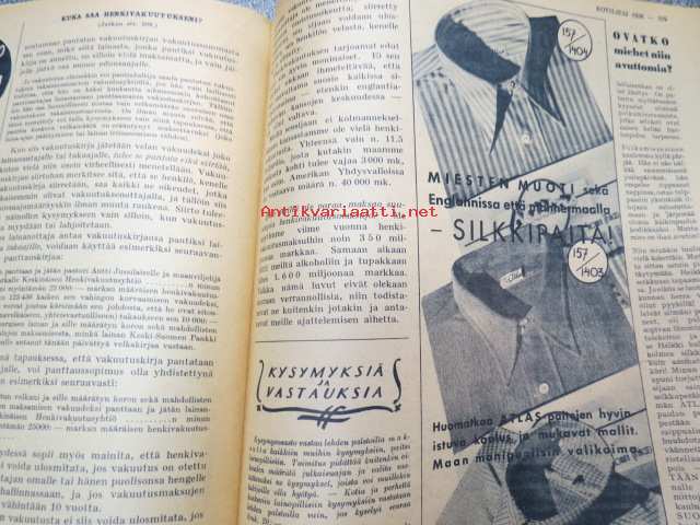 Kotiliesi 1938 nr 6, maaliskuu II, Kansikuvitus Martta Wendelin Äiti ja pikkutyttö -aihe) Mainoksia: Kudos Oy Silo, Katriina-Kahvi, Tussin -pastilli