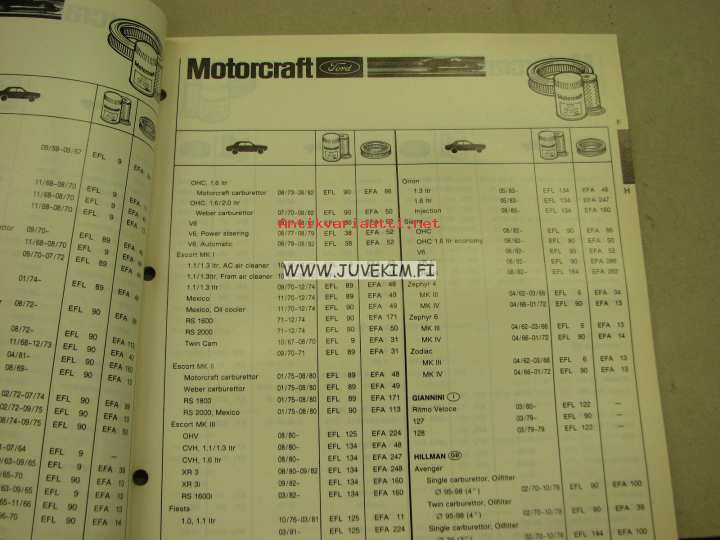 Motorcraft suodattimet 1983 -luettelo