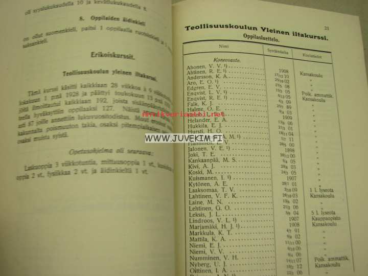 Tampereen Teknillinen Oppilaitos kertomus lukuvuodesta 1928-1929
