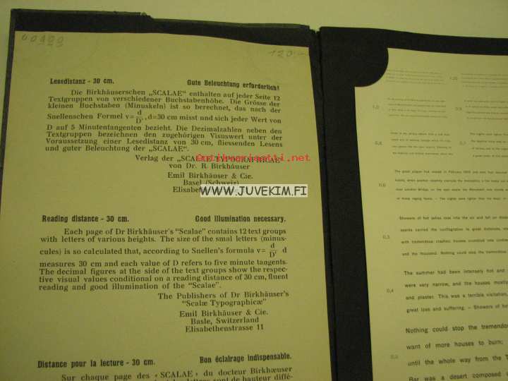 A.E. Birkhaeuser & Co Ab, 19?? 14 x 24 cm näöntarkkuuden testaustaulut.