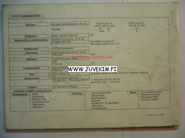 Citroën VISA II Super E, Super X -omistajan käsikirja