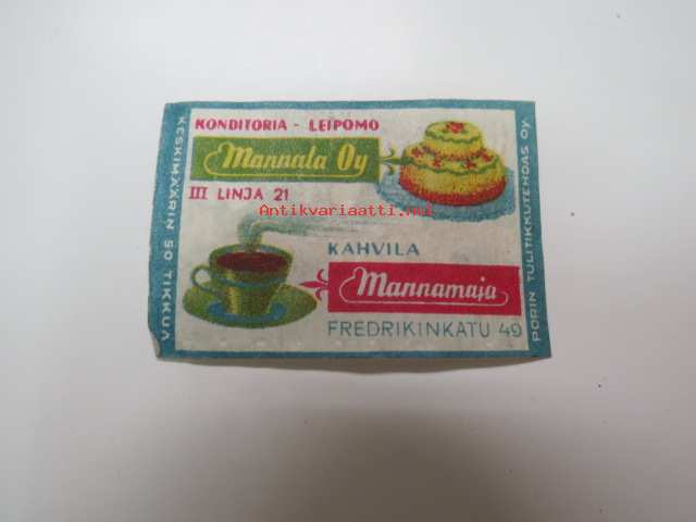 Konditoria - Leipomo - Mannala Oy III Linja 21 / Kahvila Mannamaja Fredrikinkatu 40 -tulitikkuetiketti