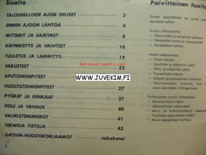 Datsun N10 Mallisarja -Käyttöohjekirja