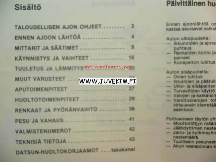 Datsun Mallisarja B310 -Käyttöohjekirja