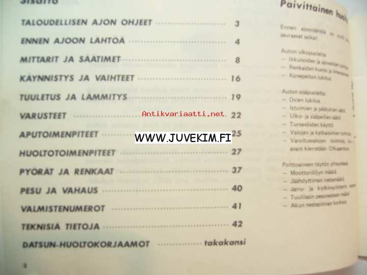 Datsun N10 Mallisarja -Käyttöohjekirja