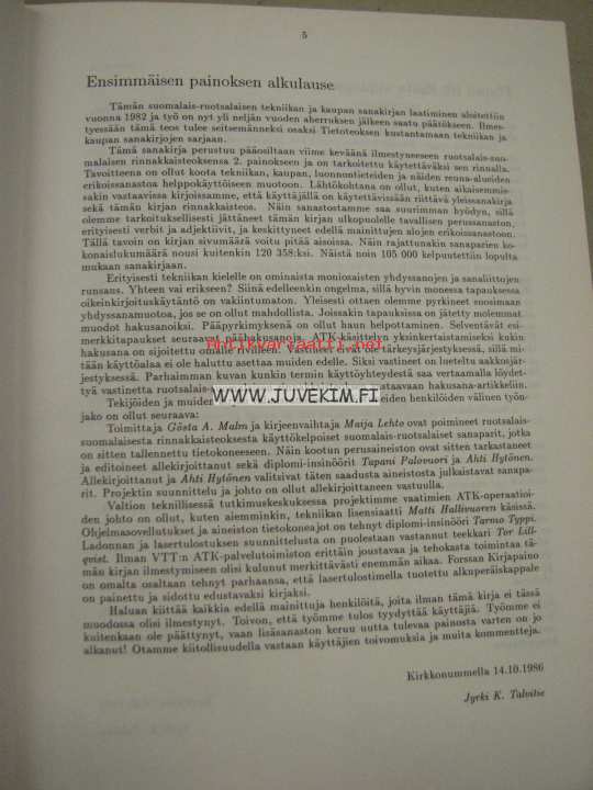 Talvitie Jyrki K., Malm Gösta A., Tietoteos, 1986 19 x 26 cm kirja.