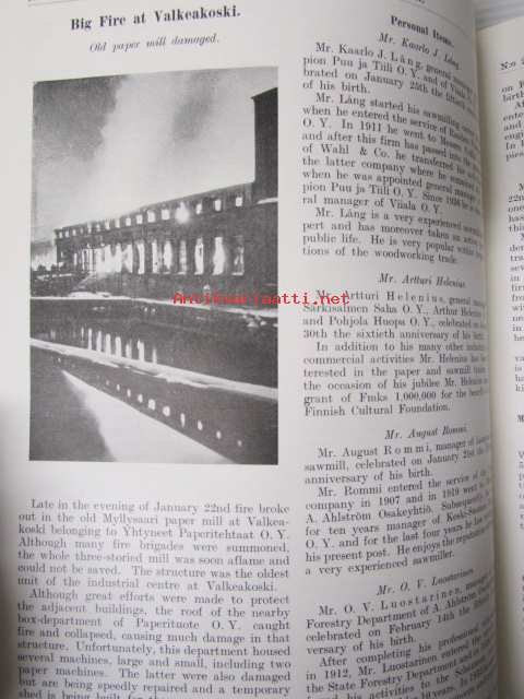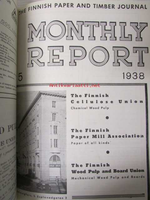Finnish Paper and Timber Journal 1938 kuukausi raportit -sidottu vuosikerta