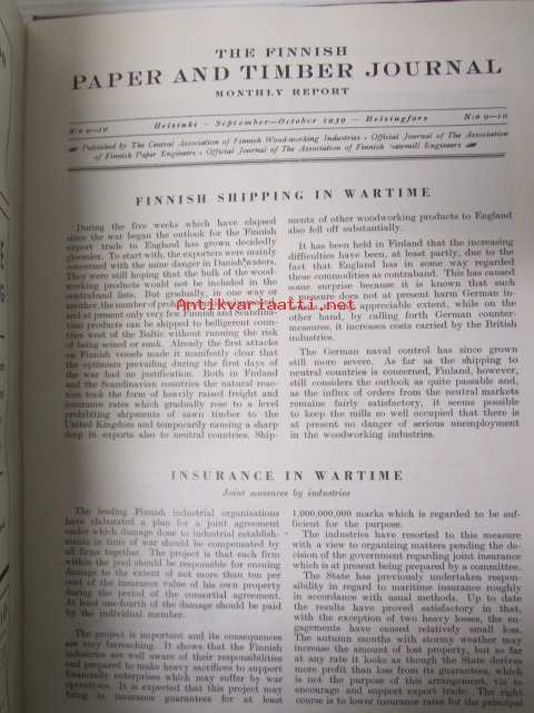 Finnish Paper and Timber Journal 1939 kuukausi raportit -sidottu vuosikerta