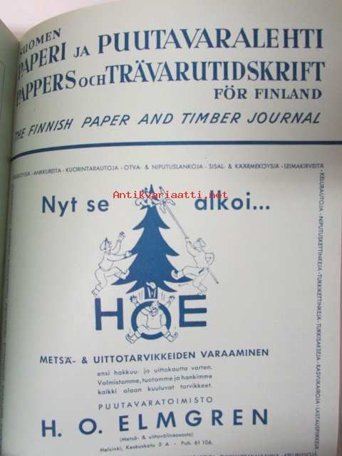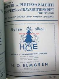 Suomen Paperi- ja Puutavaralehti / Pappers- och trävarutidskrift för Finland / The finnish paper and timber journal 1947, paperiteollisuuden ja puutavara-alan suomen-, ruotsin- ja englanninkielinen ammattilehti -sidottu vuosikerta -annual volume22 x 29 cm.