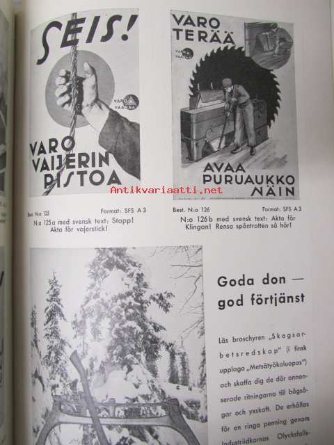Utgiven av Industriidkarenes i Finland Ömsesidiga Olycksfallsförsäkringsförening, 1941 21 x 29 cm.